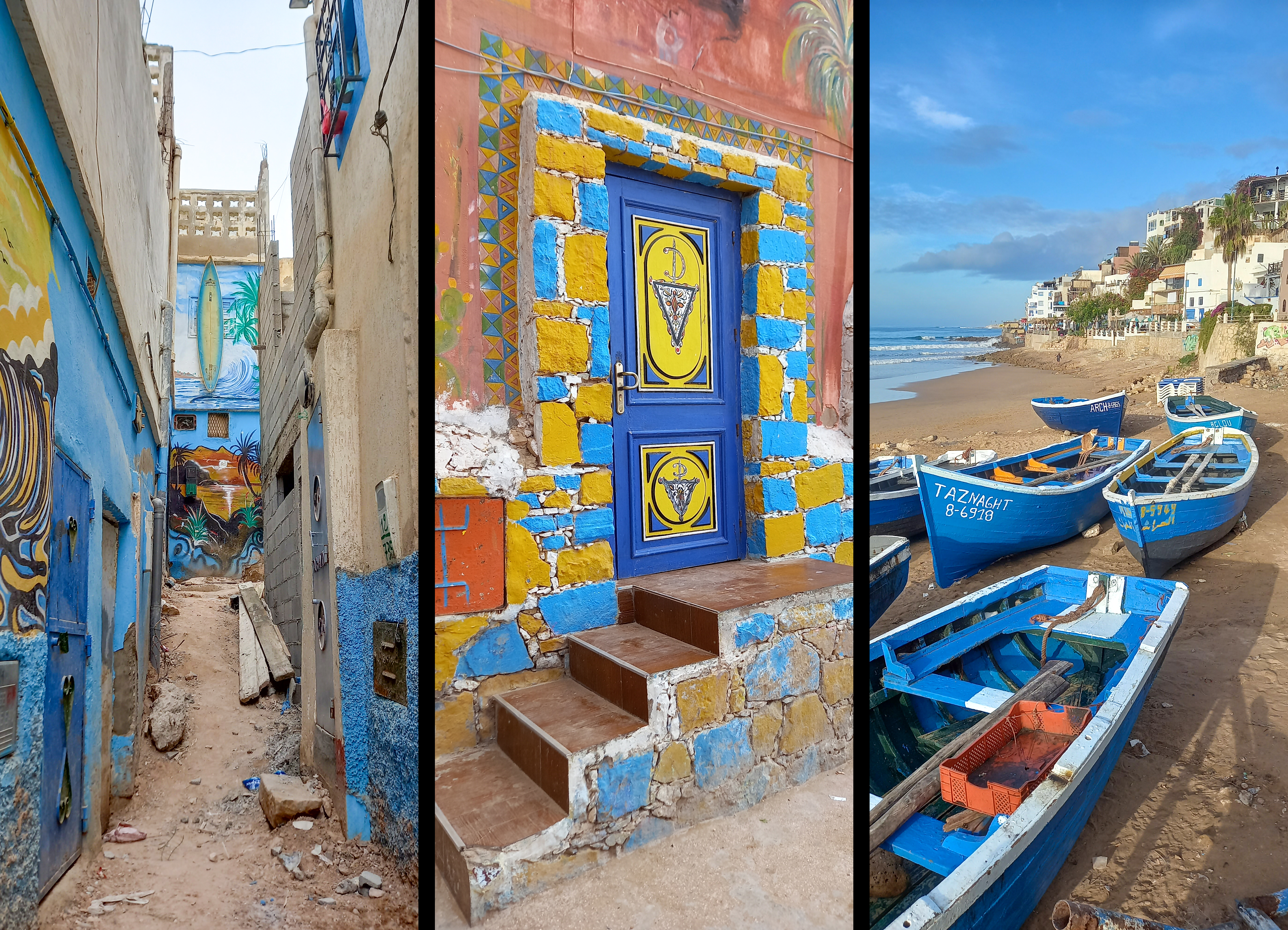 Taghazout, situé à 19 km au nord d'Agadir, est un spot de surf mondialement connu. Vous pourrez fläner dans le petit port de pêche, vous balader dans les ruelles toutes plus belles les unes que les autres, ou manger dans les nombreux restaurants et cafés sur la promenade du bord de mer.
