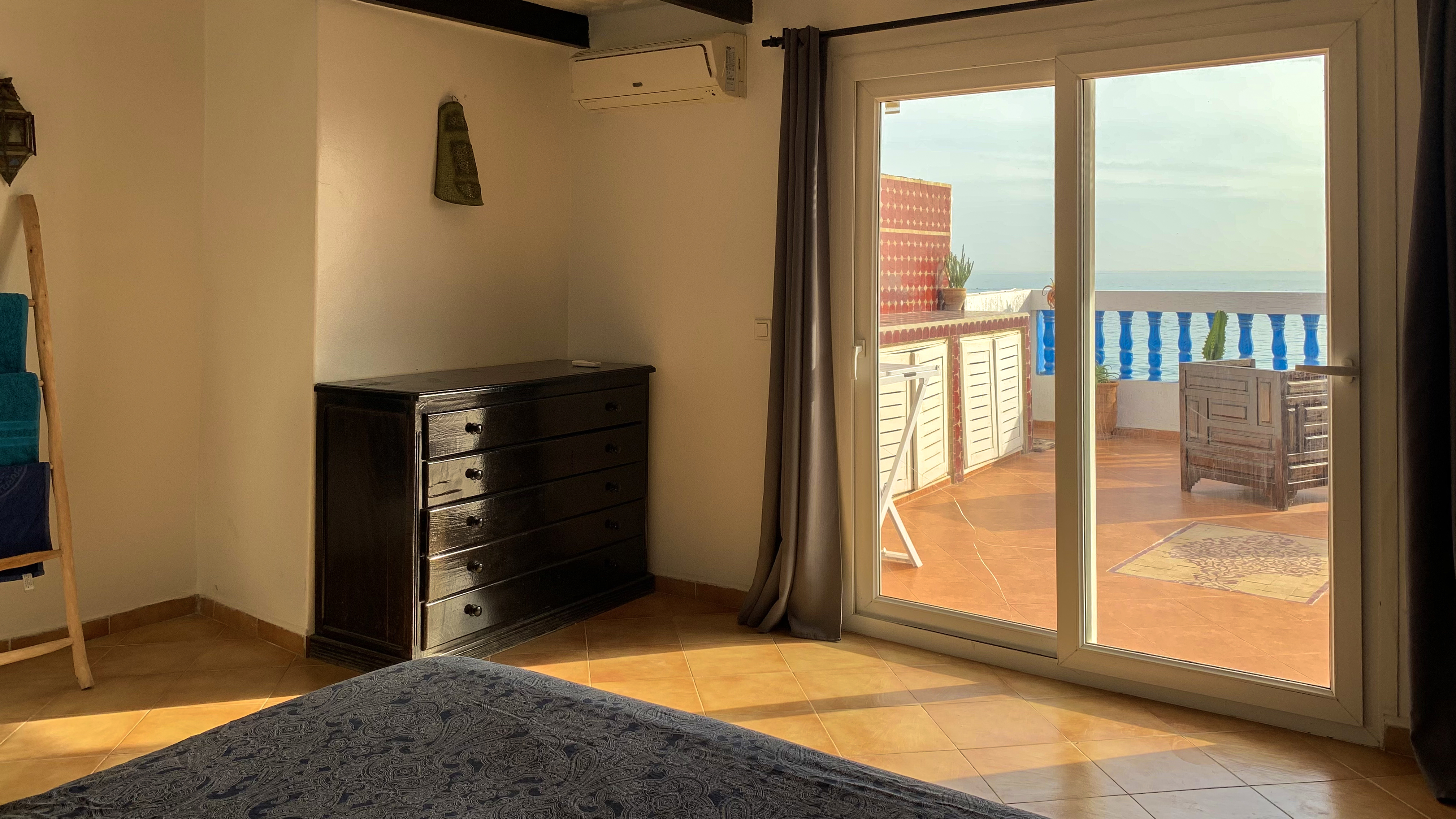 A l'étage, vous accédez à la chambre avec douche et une grande terrasse privative, salon extérieur, transat, un coin de paradis au milieu de quelques plantes. Vous l’aurez compris, vous disposez d'une vue imprenable sur l'océan depuis toutes les pièces. Barbecue en terrasse... bain de soleil, sieste en terrasse ou dans le lit face à l'océan...?