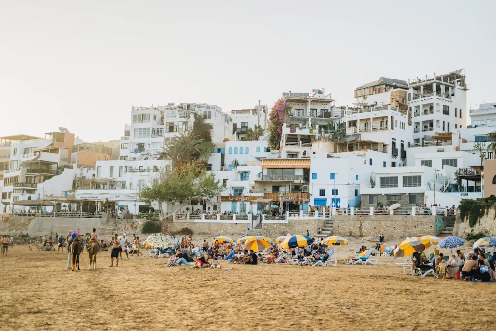 En prenant un peu de hauteur, vous admirerez le village sous un autre angle, et profiterez de l'océan ainsi que des magnifiques couchers de soleil depuis les nombreuses terrasses (Rooftop) en dégustant un thé à la menthe. À l'intérieur des terres, la rivière Tamraght traverse la Paradise Valley, une gorge bordée de palmiers et équipée de bassins et de cascades où vous pourrez vous baigner ou juste pique niquer.